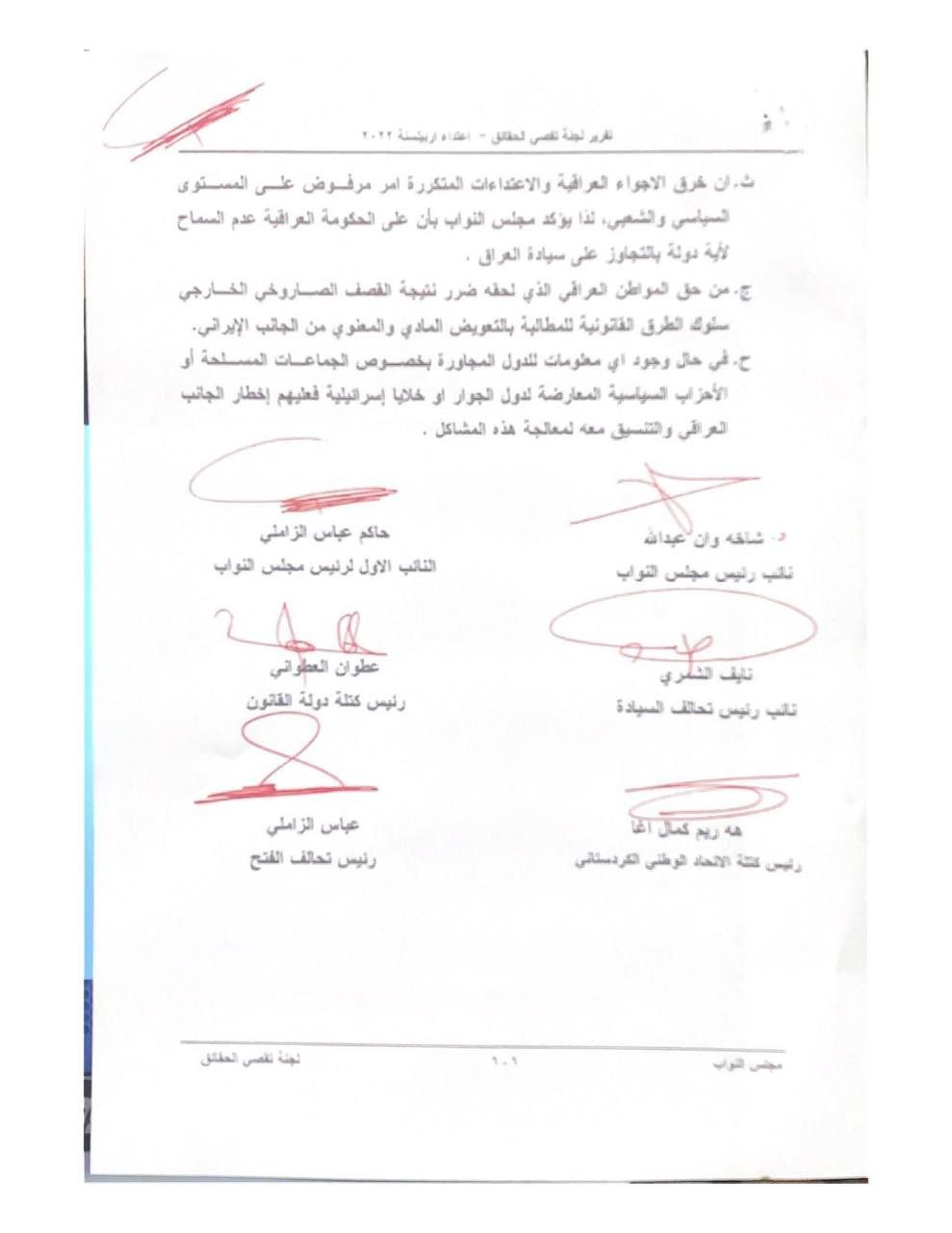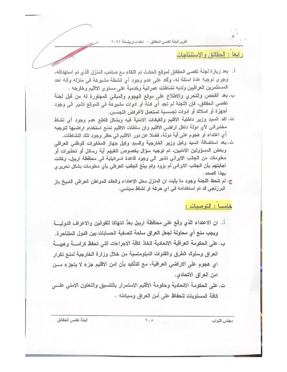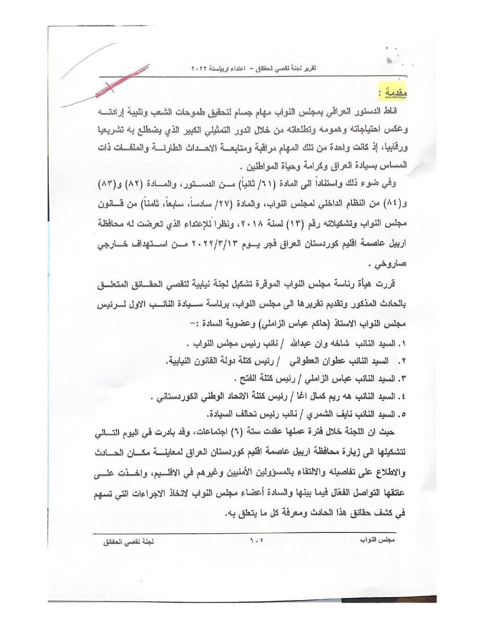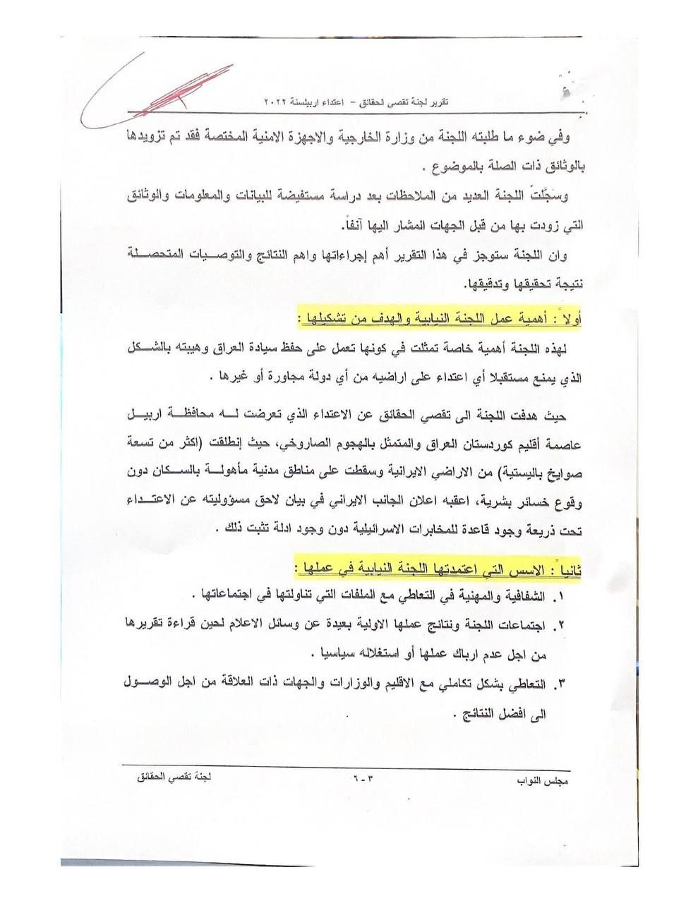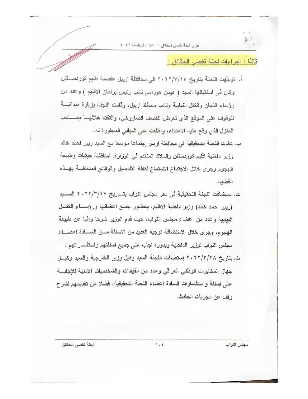 تنشر عراقيون ، وثائق تتضمن تقرير لجنة تقصي الحقائق بالهجوم الصاروخي الذي استهدف اربيل.