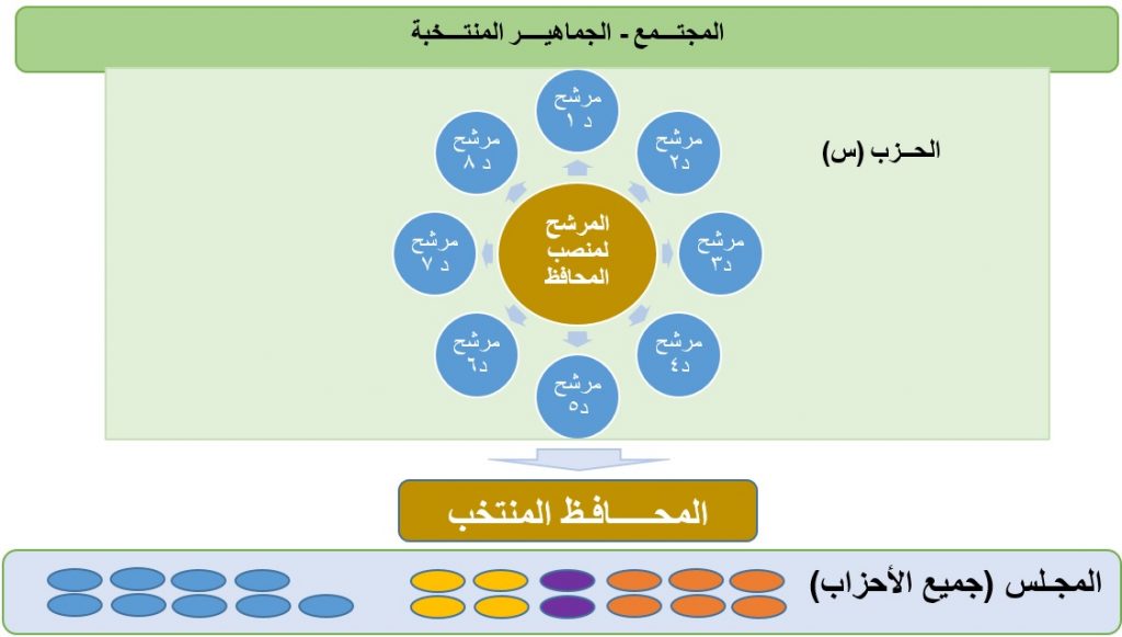 وفق قانون 21 وانسجاما مع قانون الانتخابات المعدل ممكن أن يكون العمل على انتخاب محافظ وله الأغلبية المؤيدة لبرنامجه ورؤيته التي ستكون هي الفيصل في الاختيار الشعبي وهذا سيتطور تدريجيا وربما إن فهم الأمر فمن الدورة الأولى أو الثانية سيكون وضوح الفكرة لدى الجمهور بما يحدد خياراته.