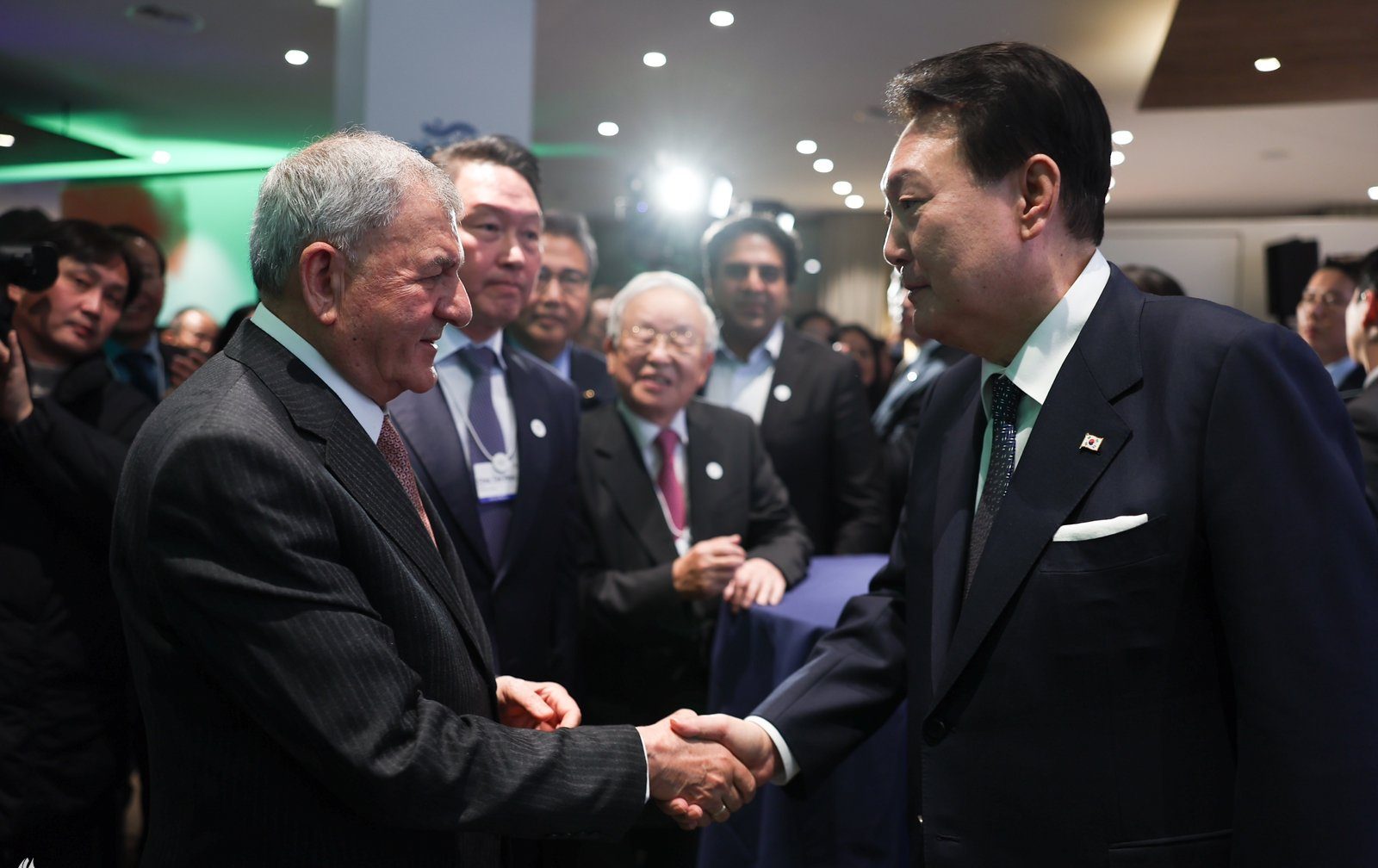 وذكر بيان لرئاسة الجمهورية ،تلقته عراقيون ، أن “رئيس الجمهورية عبد اللطيف جمال رشيد، التقى اليوم رئيس كوريا الجنوبية يون سوك يول على هامش فعاليات منتدى دافوس الاقتصادي”، مبيناً أنه “جرى، خلال اللقاء، بحث العلاقات بين البلدين الصديقين وسبل تعزيزها في المجالات التجارية والاستثمارية، إضافة إلى التطورات الراهنة على الساحة الدولية”.