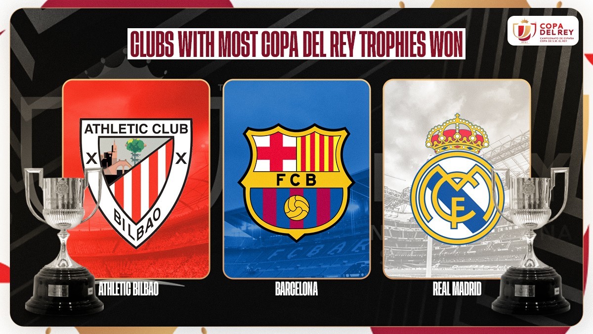 ويتصدر فريق برشلونة الأكثر تتويجًا بلقب كأس ملك اسبانيا على مر التاريخ برصيد 31 لقبًا، ثم أتلتيك بيلباو وصيفًا برصيد 23 لقبًا، وريال مدريد ثالثًا برصيد 19 لقبًا”.