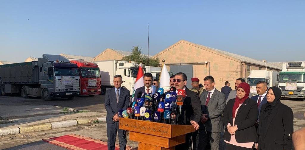 وأعلن وزير التجارة أثير الغريري، في وقت سابق اليوم السبت، عن انطلاق قوافل محملة بمواد غذائية إلى المنافذ التسويقية.