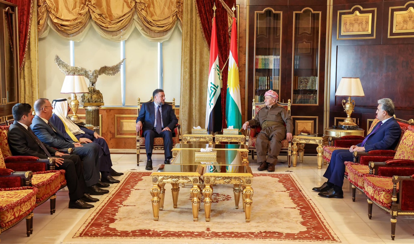 وجاء في بيان لمقر بارزاني ورد لوكالة انباء عراقيون، ان رئيس الحزب الديمقراطي الكوردستاني مسعود بارزاني استقبل اليوم السبت رئيس تحالف السيادة خميس الخنجر ووفد مرافق له.