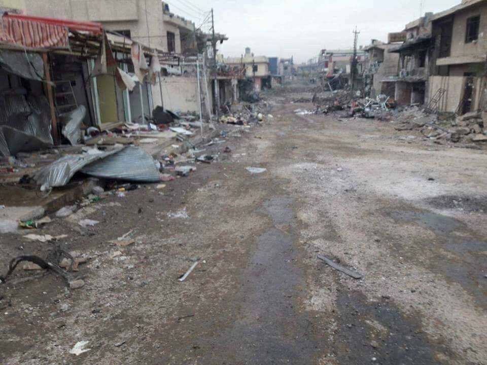 وقال حاجم في تصريح صحفي اليوم السبت:” ان 90% من شوارع الجانب الايسر قد دمرت وتسبب ذلك باضرار كبيرة بشبكة المياه والاتصلات والكهرباء المدفونة تحت الارض”.