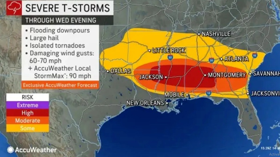 إلى ذلك، حذرت هيئة الأرصاد الجوية الوطنية من أن درجات الحرارة التي يحتمل أن تحطم الرقم القياسي ستستمر فوق جنوب تكساس وساحل الخليج الغربي والوسطى وأن العواصف التي تنتج رياحا مدمرة وبَرَدا وربما أعاصير قد تضرب وادي المسيسيبي السفلي.