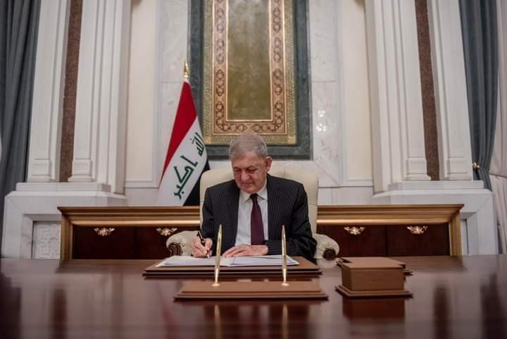 رئيس الجمهورية الدكتور عبد اللطيف جمال رشيد، يصادق على قانون الموازنة المالية العامة الاتحادية.