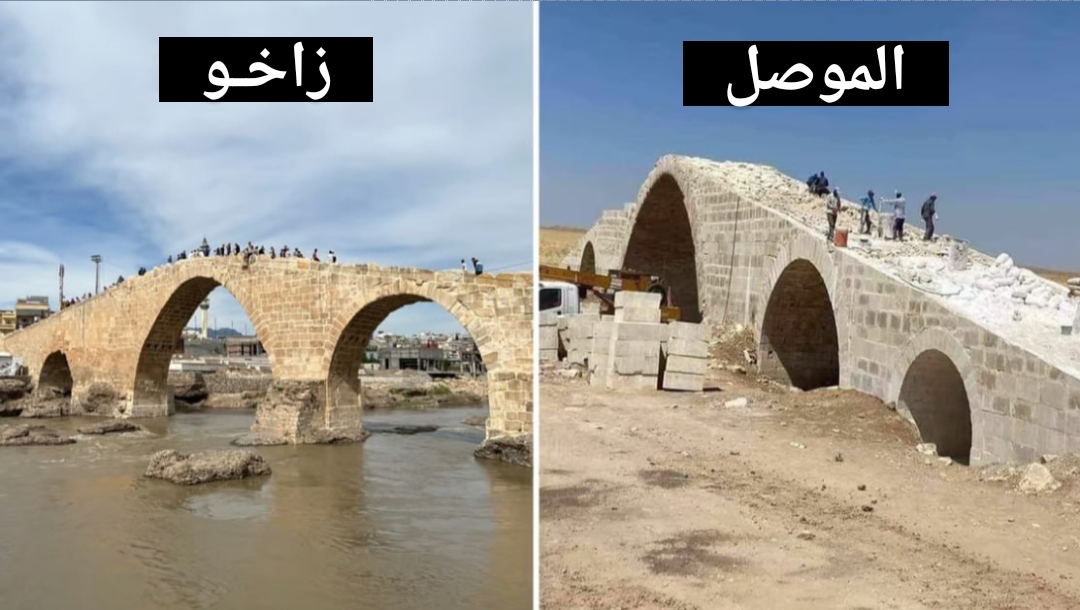 واضاف أعتقد أن هناك التباساً تشهده صفحات السوشيال ميديا في قضية استنساخ جسر زاخو في الموصل، لأن إعادة ترميم الجسر جاءت وفق ضوابط ودلائل تاريخية، ففي العصر العباسي كان طراز البناء هذا هو الشائع في بناء المآذن والجسور والأبنية.