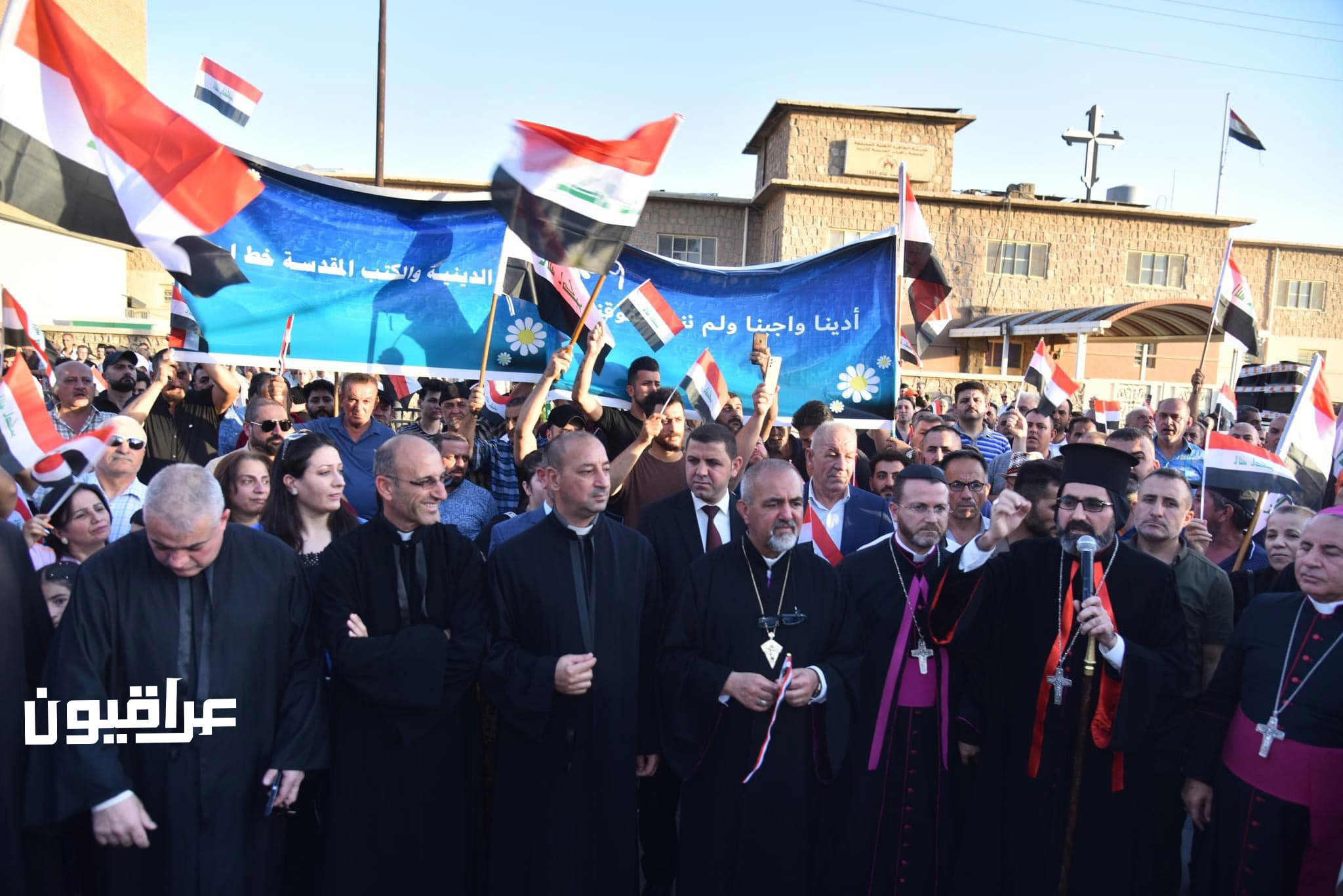 مجلس المطارنة في محافظة نينوى، ينظم وقفة احتجاجية لتحقيق عدد من المطالب “المشروعة” من الحكومة الاتحادية وأبرزها إيقاف محاولات التغيير الديموغرافي وعدم الاعتداء على الشخصيات الدينية، فيما منعت السلطات الأمنية التابعة للحشد دخول الصحفيين لتغطية الوقفة على “دفعتين”.