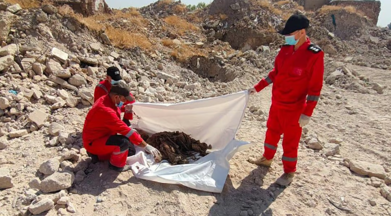 وذكر بيان لمديرية الدفاع المدني في نينوى، تلقت عراقيون نسخة منه ان : بعد ورود معلومات عن وجود عظام بشرية تحت احد بيوت الموصل القديمة شرع فريق البحث والإنقاذ التابع إلى مديرية دفاع مدني نينوى / مركز رتل الطوارئ بانتشال جثة مجهولة الهوية عدد (1) عبارة عن هيكل عظمي من منطقة الميدان في سوق النجارين بالمدينة القديمة تعود إلى أيام تحرير الموصل من عصابات داعش الاجرامية