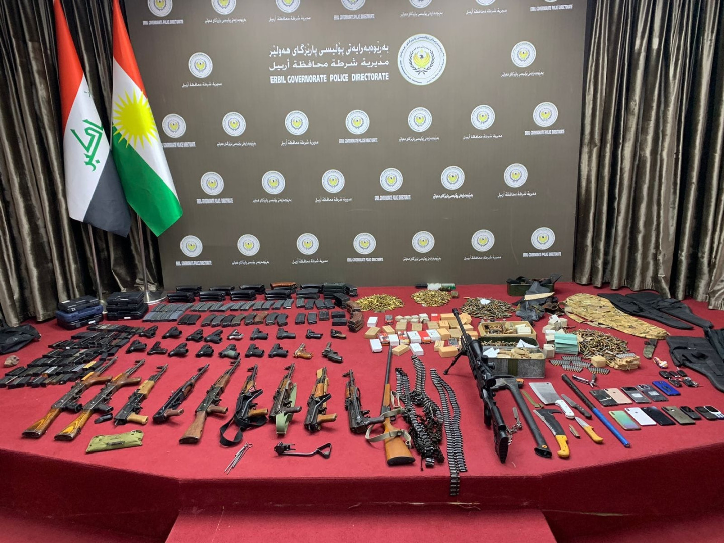 مديرية شرطة محافظة اربيل، تعلن عن اعتقال 12 متهما ببيع وشراء الاسلحة بشكل غير قانوني ومصادرة العشرات من قطع السلاح والاعتدة.
