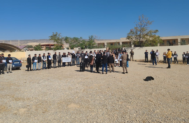 شهدت تربية سنجار، اليوم الأحد، وقفة احتجاجية شارك فيها عشرات المحاضرين المتطوعين، مطالبين بالإسراع في الإعلان عن الأسماء المشمولة بالتعيينات، بعد سنوات طويلة من العمل المجاني، ملوحين بالتصعيد عبر الاعتصام أو الإضراب عن العمل خلال 15 يومًا في حال عدم الاستجابة لمطالبهم.