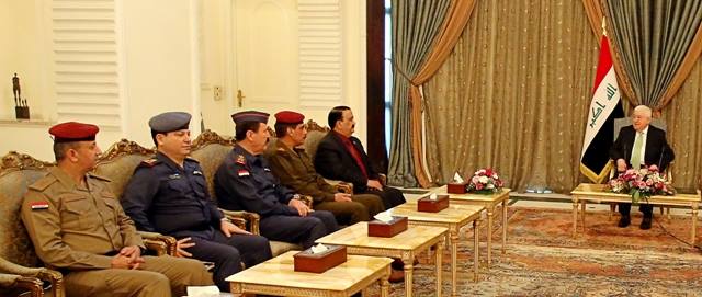 وقالت رئاسة الجمهورية في بيان لها، إن معصوم “استقبل في قصر السلام ببغداد وزير الدفاع عرفان محمود الحيالي على رأس وفد عسكري رفيع المستوى ضم عددا من كبار القادة العسكريين”.